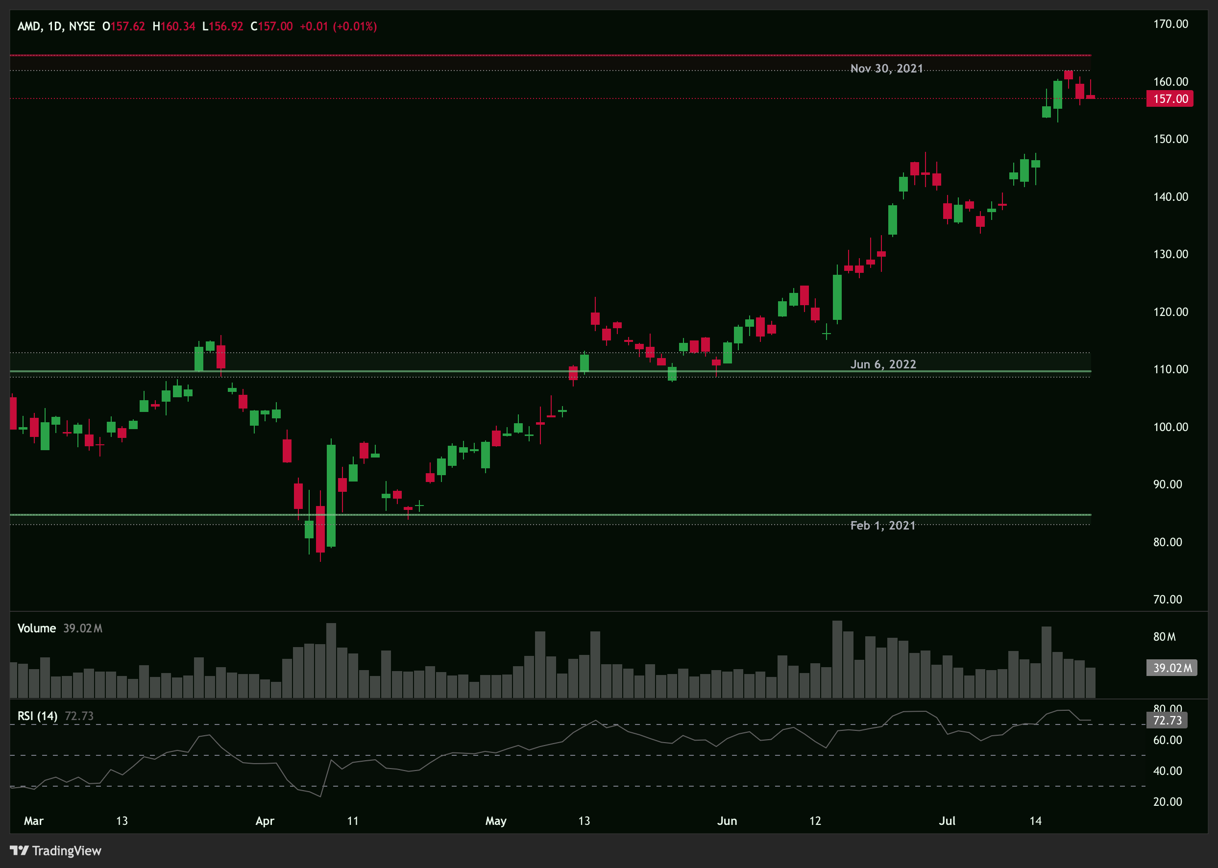 Technically, it also doesn’t look too good for AMD. Apart from its red-hot RSI, we’re also seeing a bigger drop-off in volume compared to earlier legs of the move.