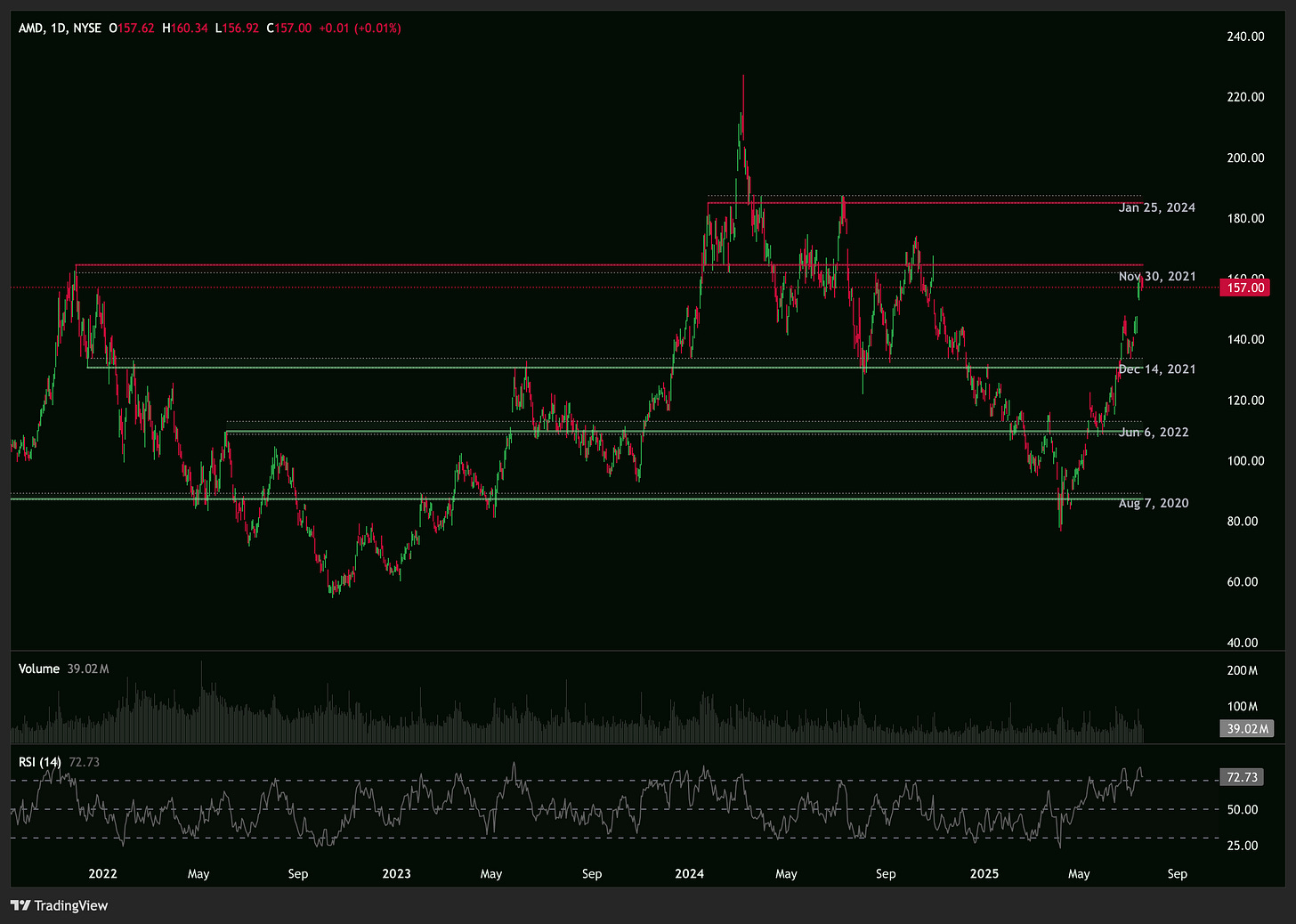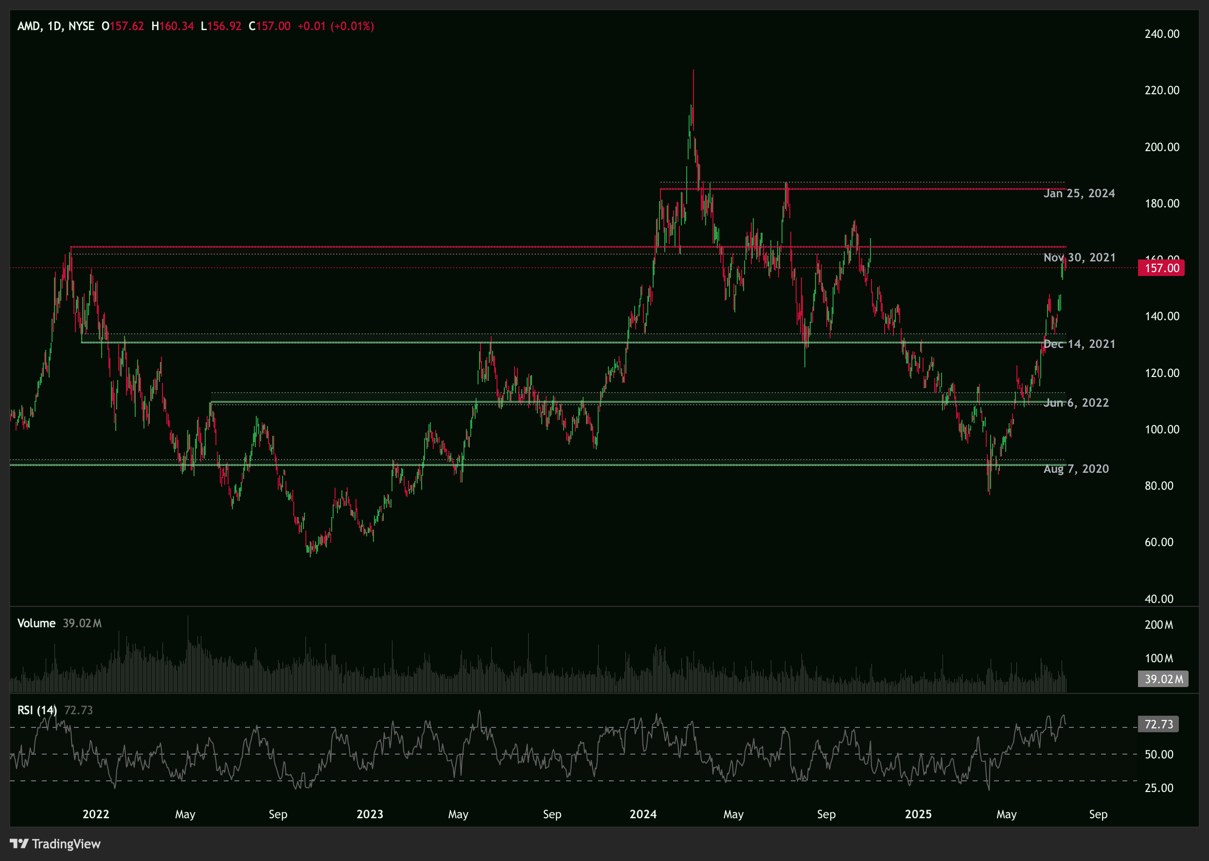 But right now, the setup’s looking a bit shaky for AMD. Price is about to crash into a long-term resistance zone that’s proven tricky for the stock in the past.