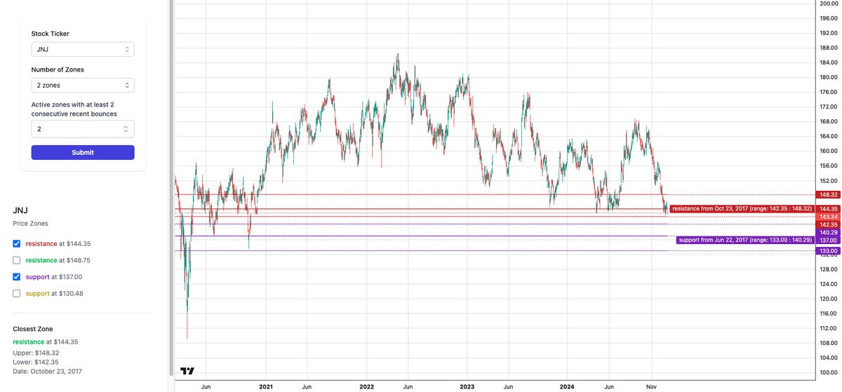 After years of refining our approach, we built a quantitative system that cuts through the BS. Our algorithm highlights key market Zones—areas on the chart where real money moves, not just speculative noise.
