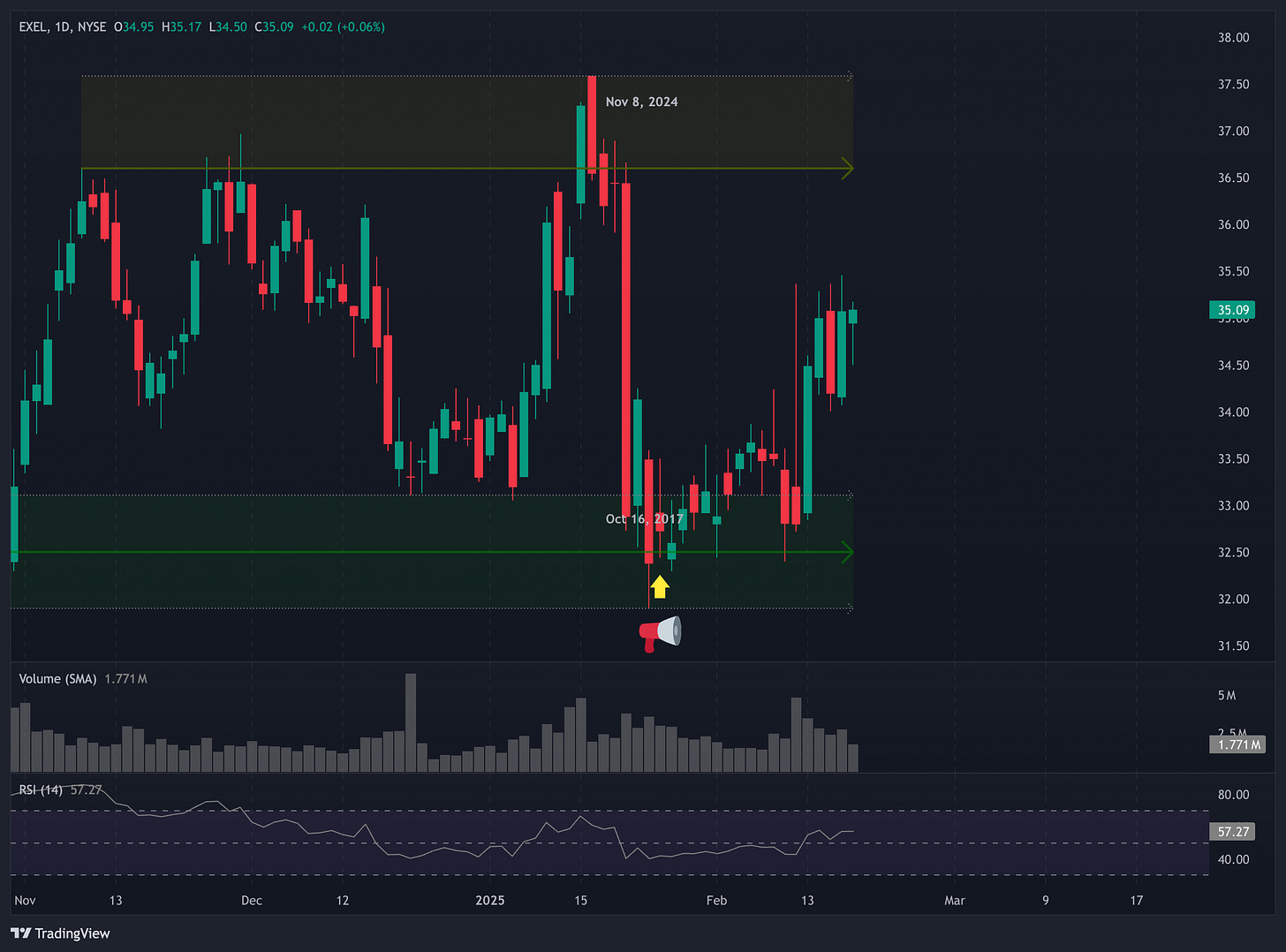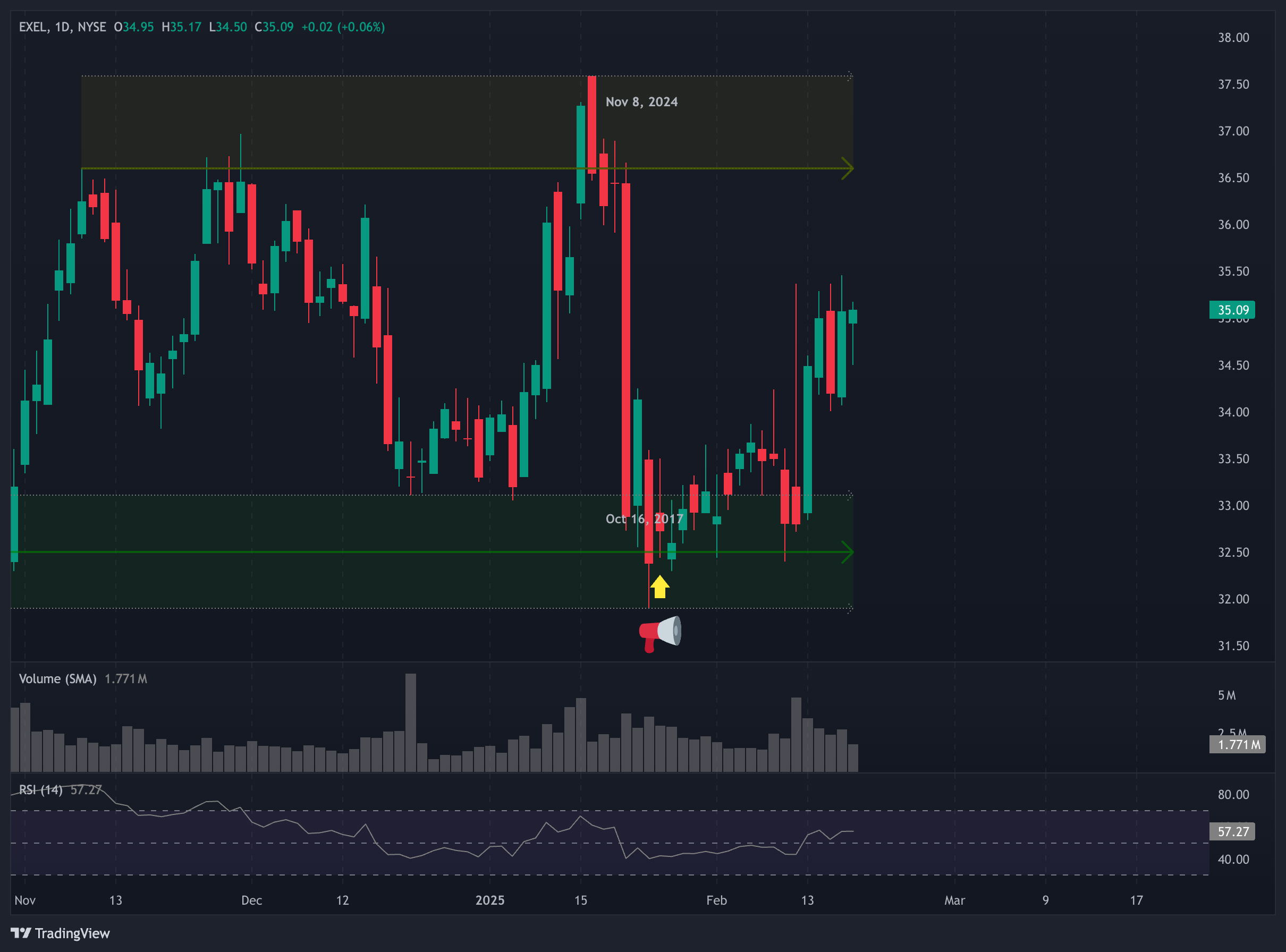 Since the alert, EXEL has gone up by about 7.2%, and could still be well on its way to the November 2024 zone.
