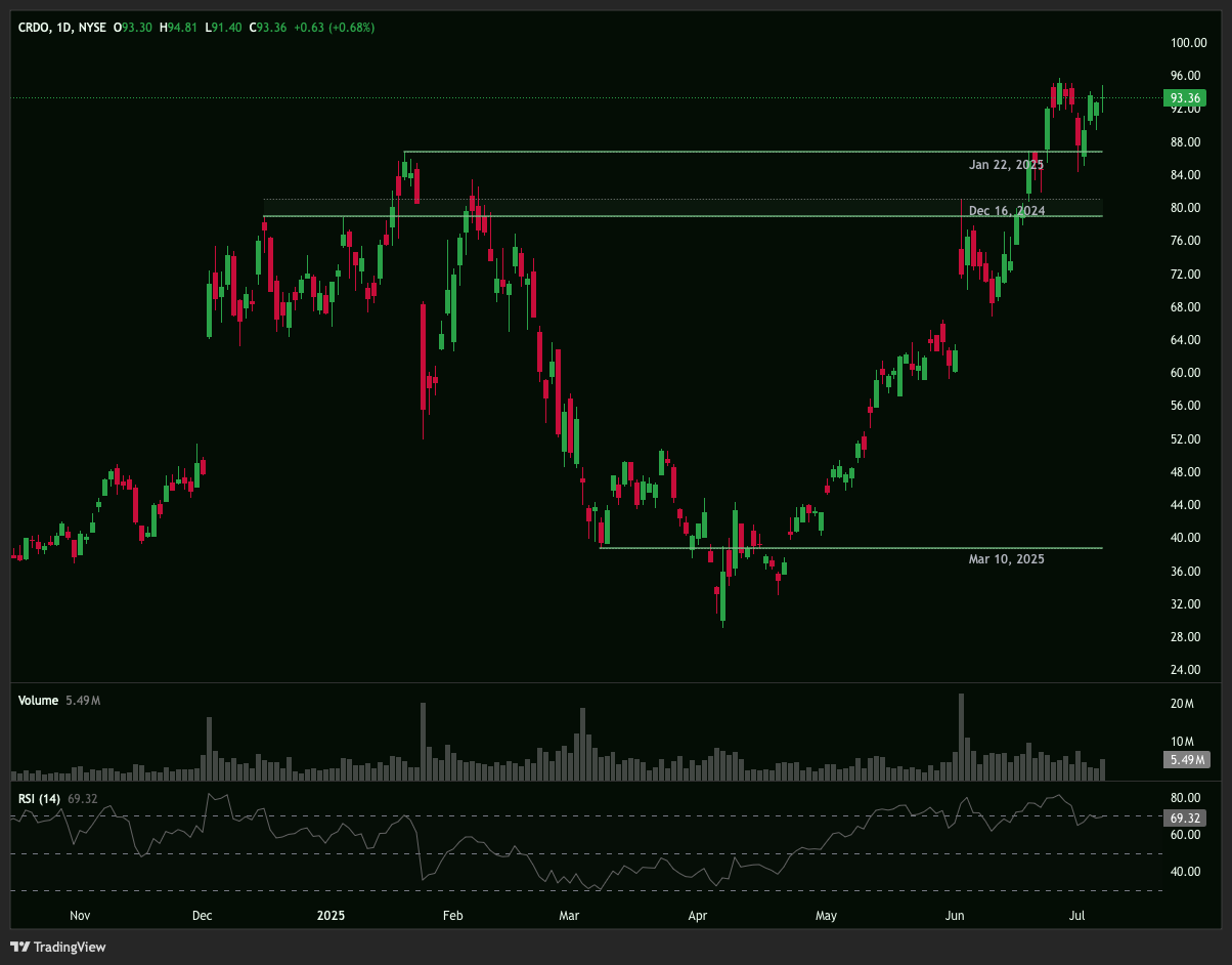 Tech stocks with sky-high valuations, recent price surges, and volatility cranked all the way up to eleven—all while nearing major resistance zones.