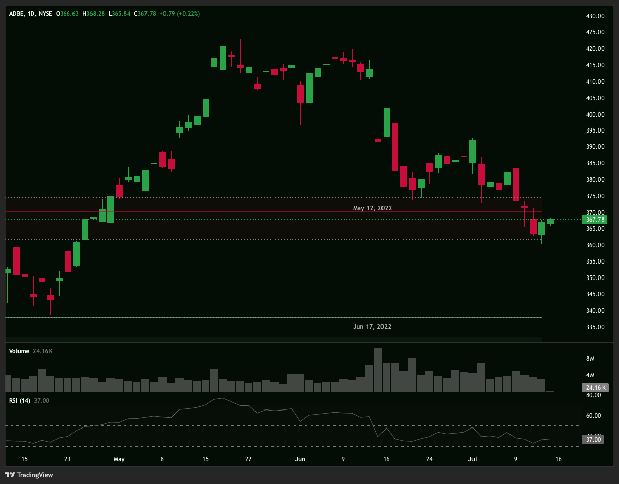 Sure, ADBE doesn’t look like much right now—it’s hovering around its May 2022 zone, cooling down after an RSI spike from its most recent rally.